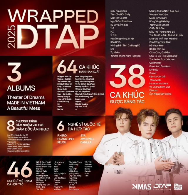 Dấu ấn nổi bật nhất của DTAP trong năm 2025 được khẳng định rõ nét với sự ra mắt của album Made In Vietnam đúng vào dịp kỷ niệm 80 năm Cách mạng tháng Tám thành công, hướng tới kỷ niệm 80 năm Quốc khánh 2/9. Album gồm 16 ca khúc, được xem như 16 lát cắt bao quát những vẻ đẹp đa dạng của con người, lịch sử, văn hóa, thể thao và du lịch Việt Nam.